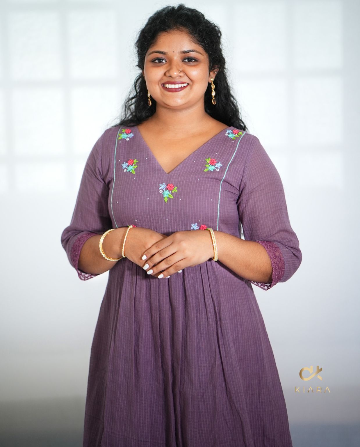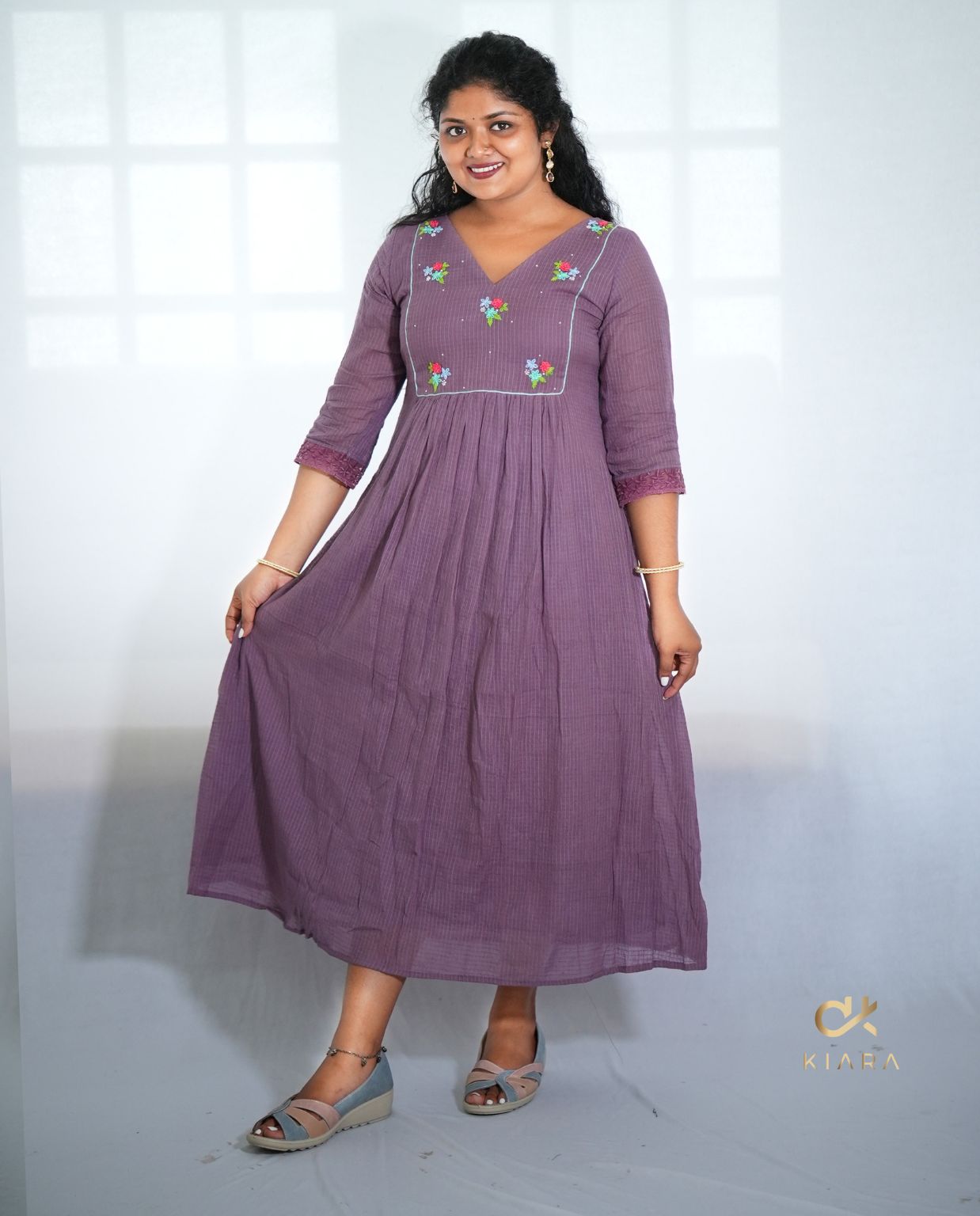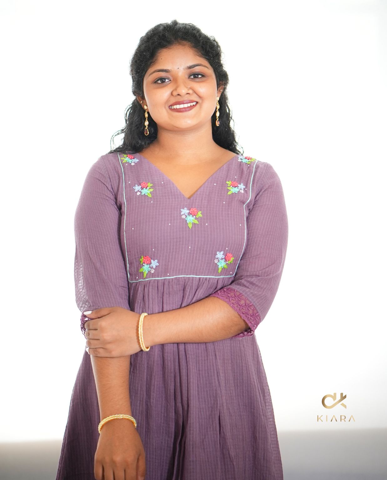 Elevate your everyday elegance with this exquisite Hand Embroidered Kota Cotton Kurti, crafted for comfort and charm. Made from lightweight and breathable Kota cotton, this kurti features delicate hand embroidery that adds a timeless artisanal touch. The subtle lace detailing along the sleeves and hem enhances its feminine grace, making it perfect for casual outings, festive gatherings, or office wear.