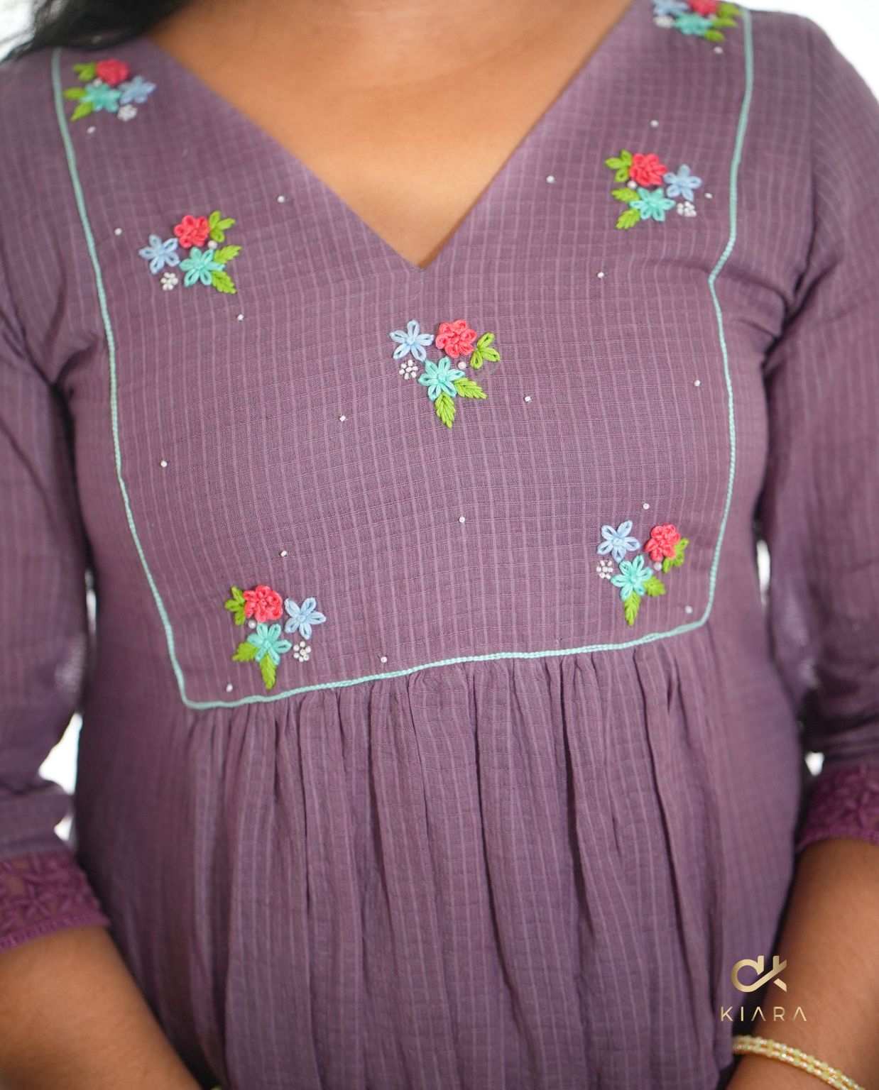 Hand Embroidered Kota Cotton Kurti with Lace Detailing