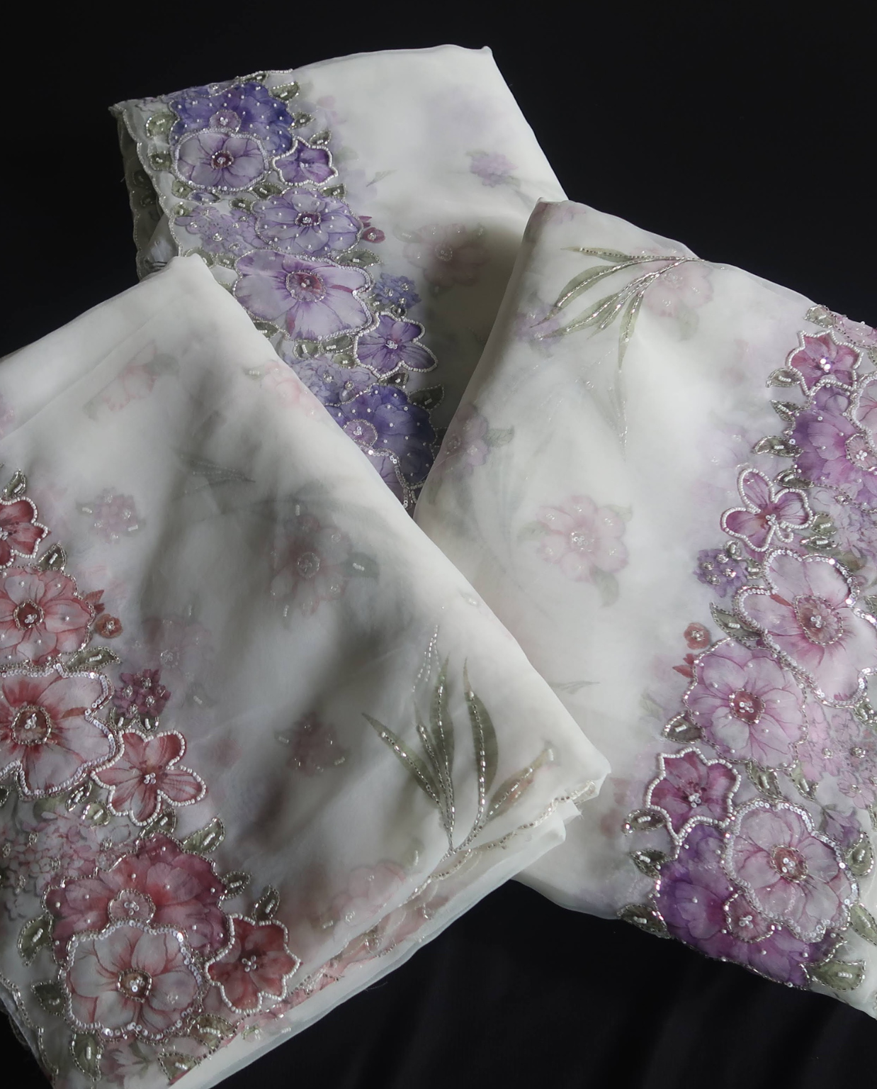 Digital floral printed organza sarees with hand embroidered embellishments gorgeous!. Perfect blend of digital prints and handwork #OrganzaSaree #FloralChic