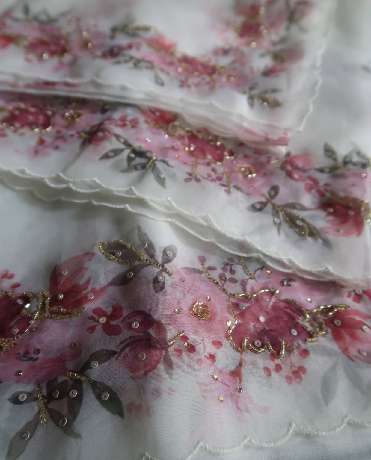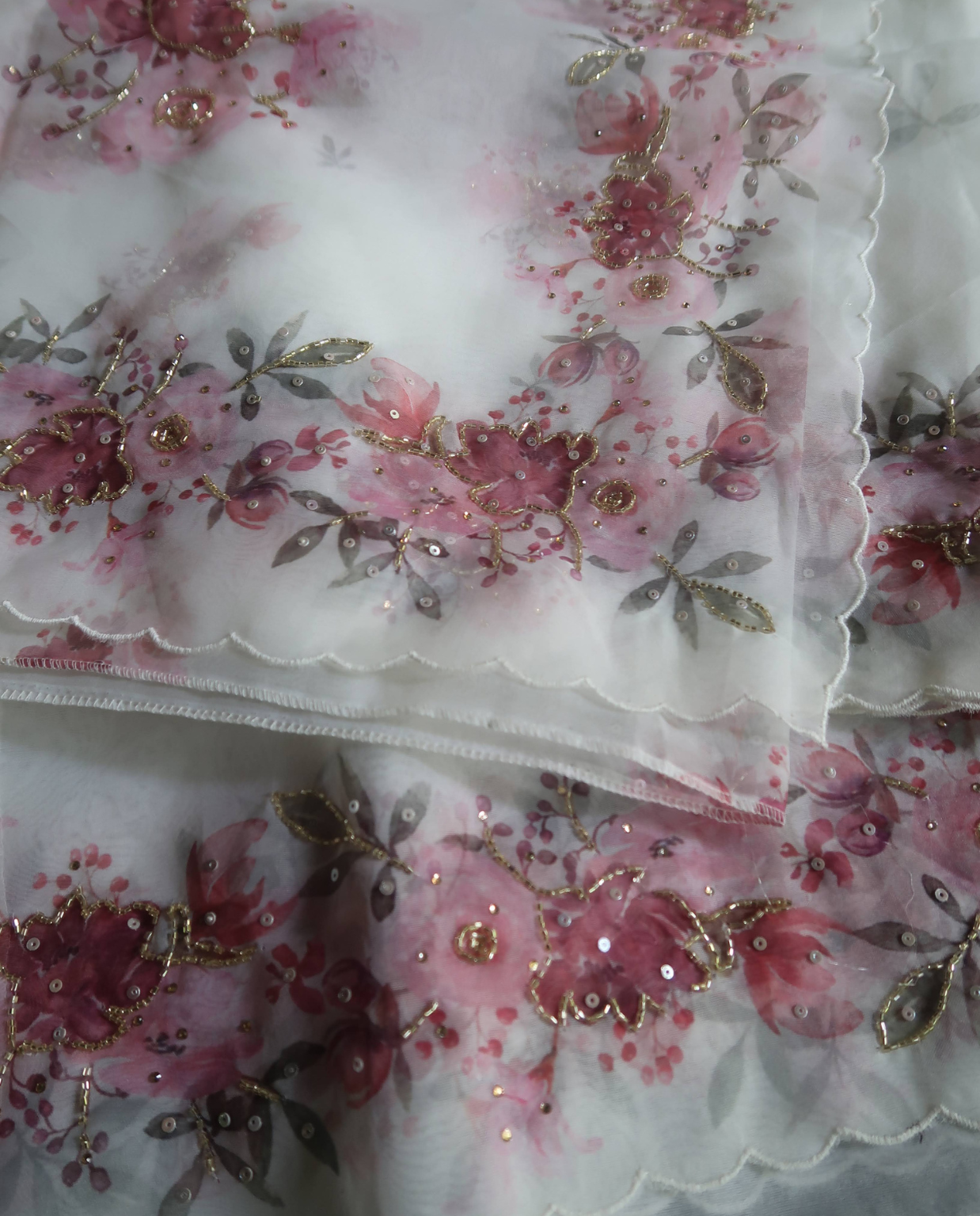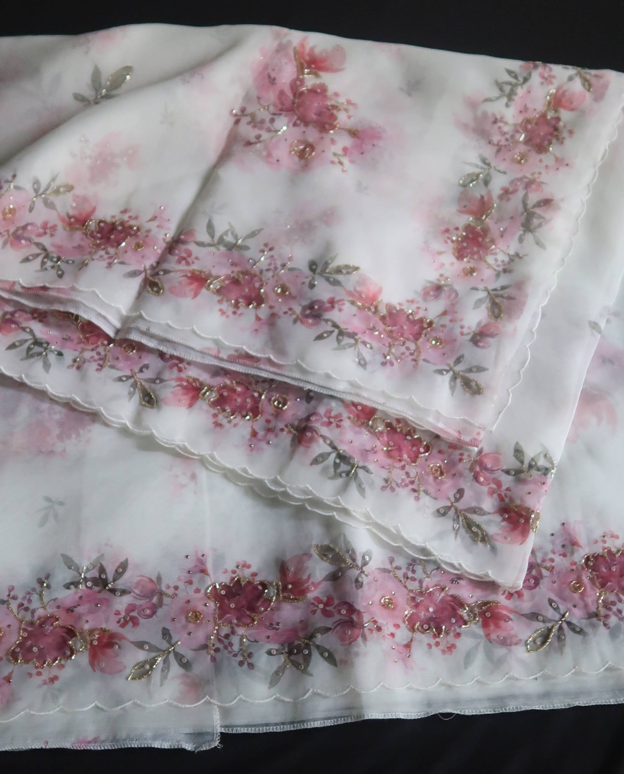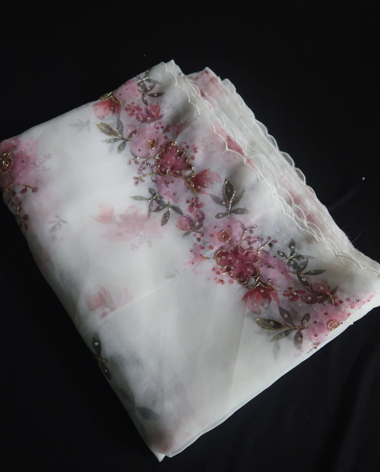 Digital floral printed organza sarees with hand embroidered embellishments gorgeous! @4790 with free shipping. Perfect blend of digital prints and handwork #OrganzaSaree #FloralChic