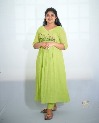 Elevate your ethnic wardrobe with our exquisite Hand Embroidered Matka Silk Co-ord Set, a perfect blend of timeless craftsmanship and modern silhouette. Crafted from luxurious Matka silk, this ensemble features intricate hand embroidery that adds a touch of elegance and artistry to every piece.