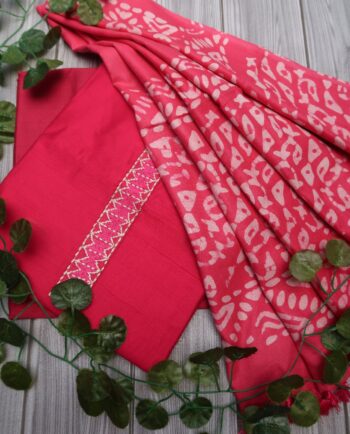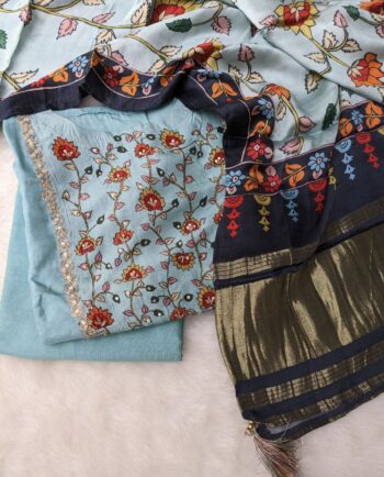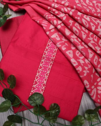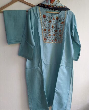 Georgette Top with Pin tuck Yoke and Hand Embroidery with Georgette Dupatta and Santoon Bottom