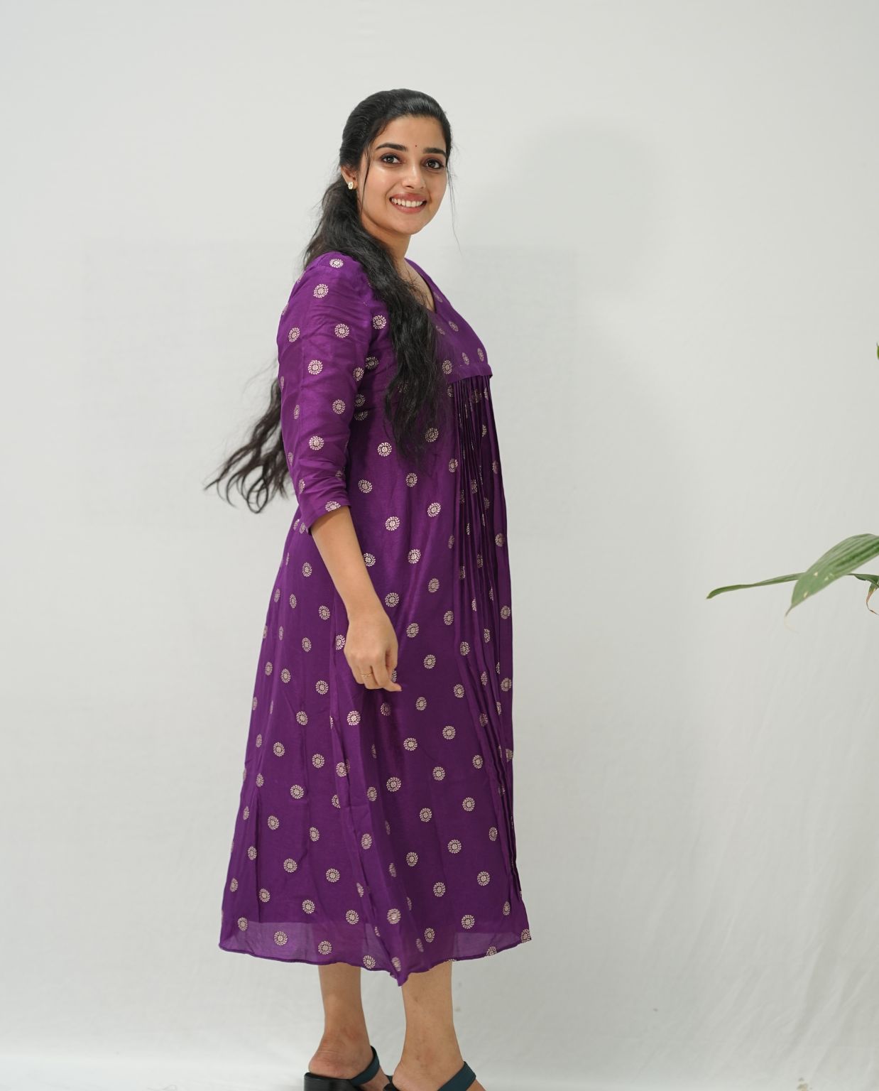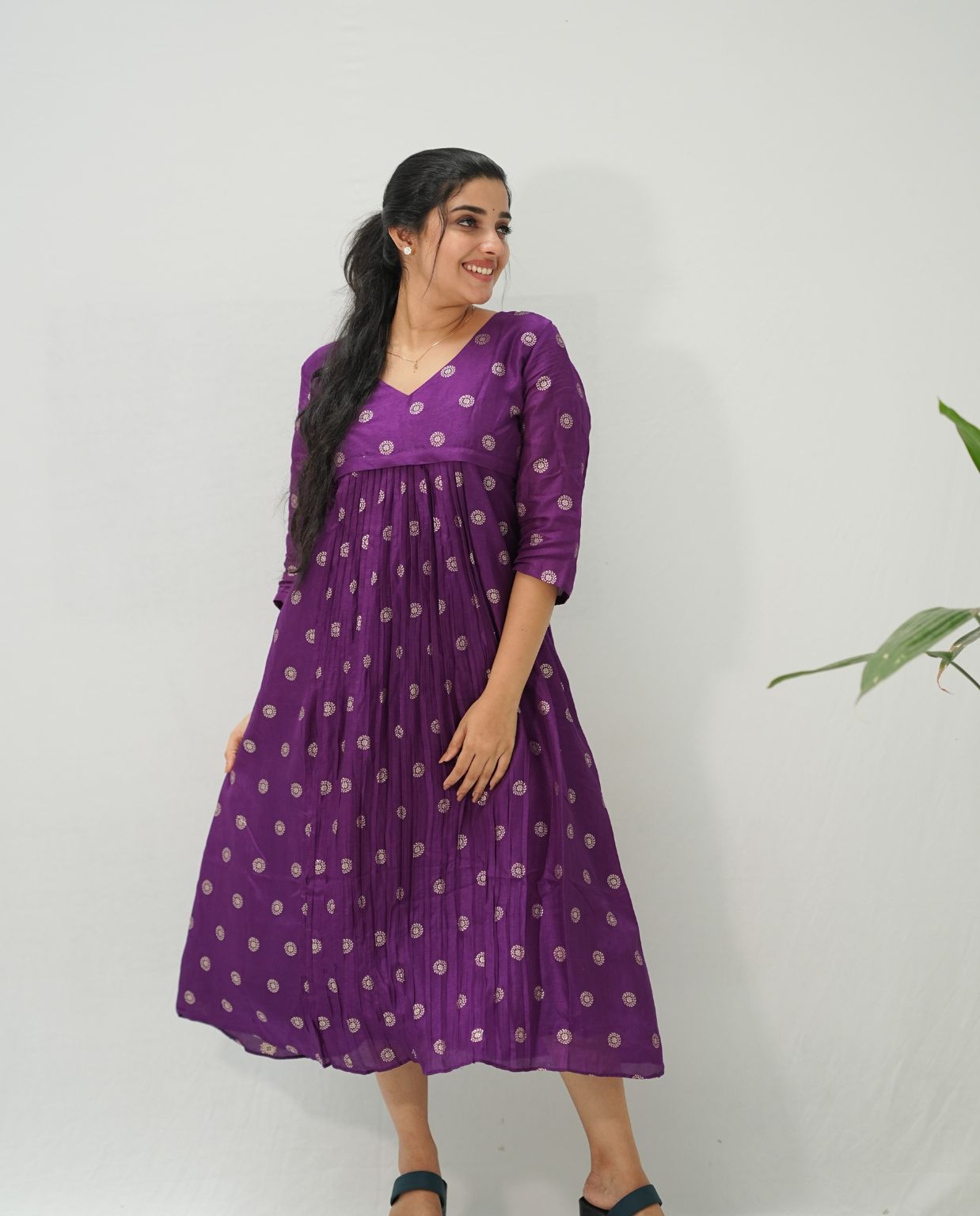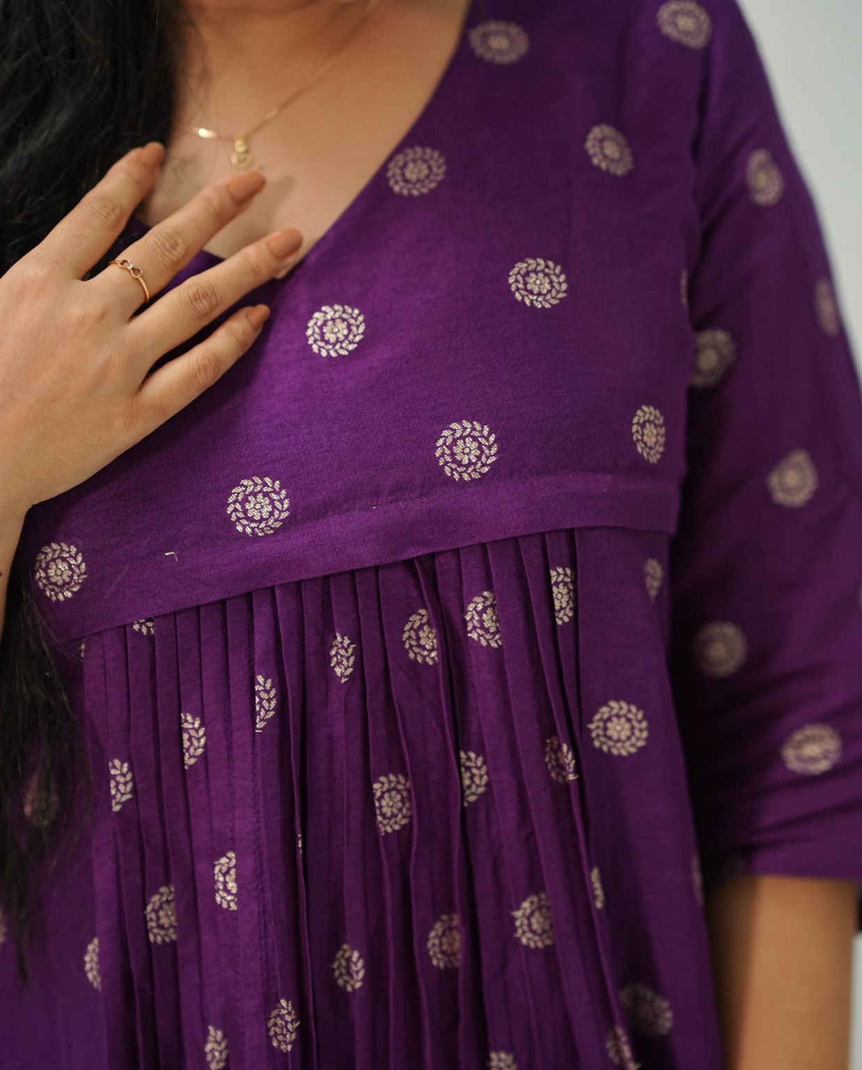 Banarasi Dola Silk Pleated Kurti with Feeding Zip