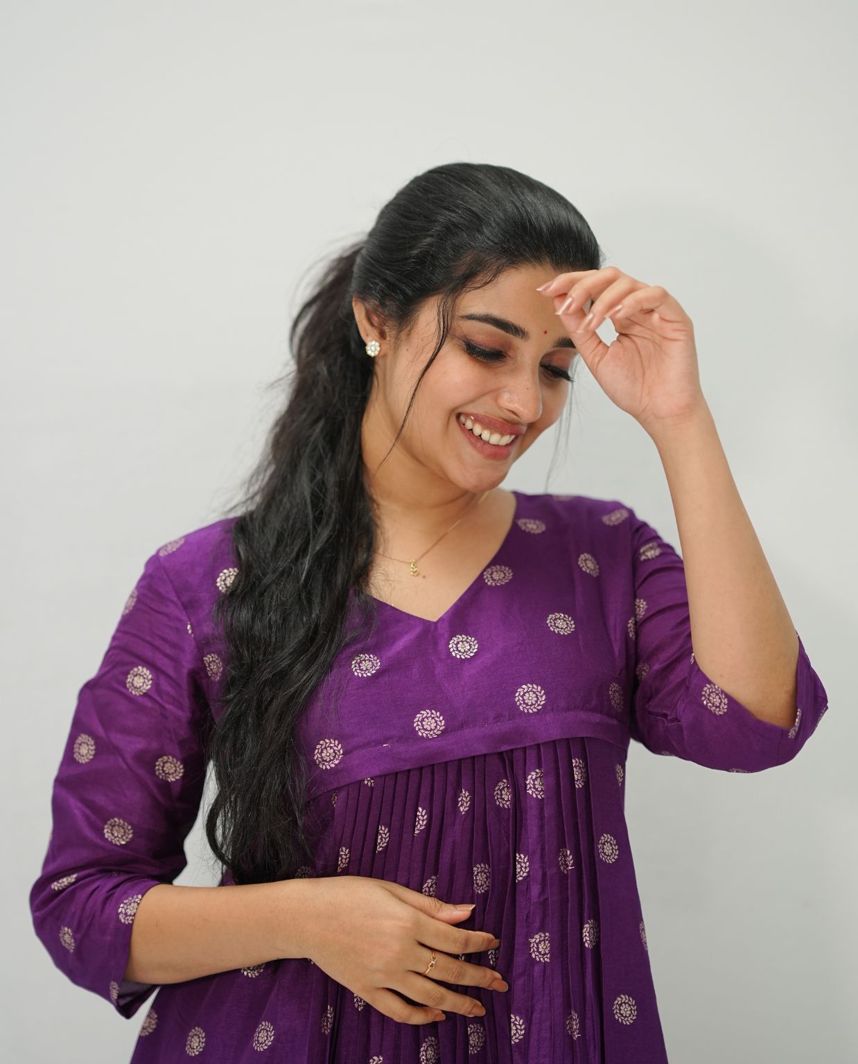 Experience elegance and functionality in one with our Banarasi Dola Silk Kurti, tailored in a graceful pleated pattern and thoughtfully designed with a hidden feeding zip for nursing convenience. Crafted from rich Dola silk with Banarasi weave, this kurti offers a luxurious feel, perfect for festive occasions or special gatherings.