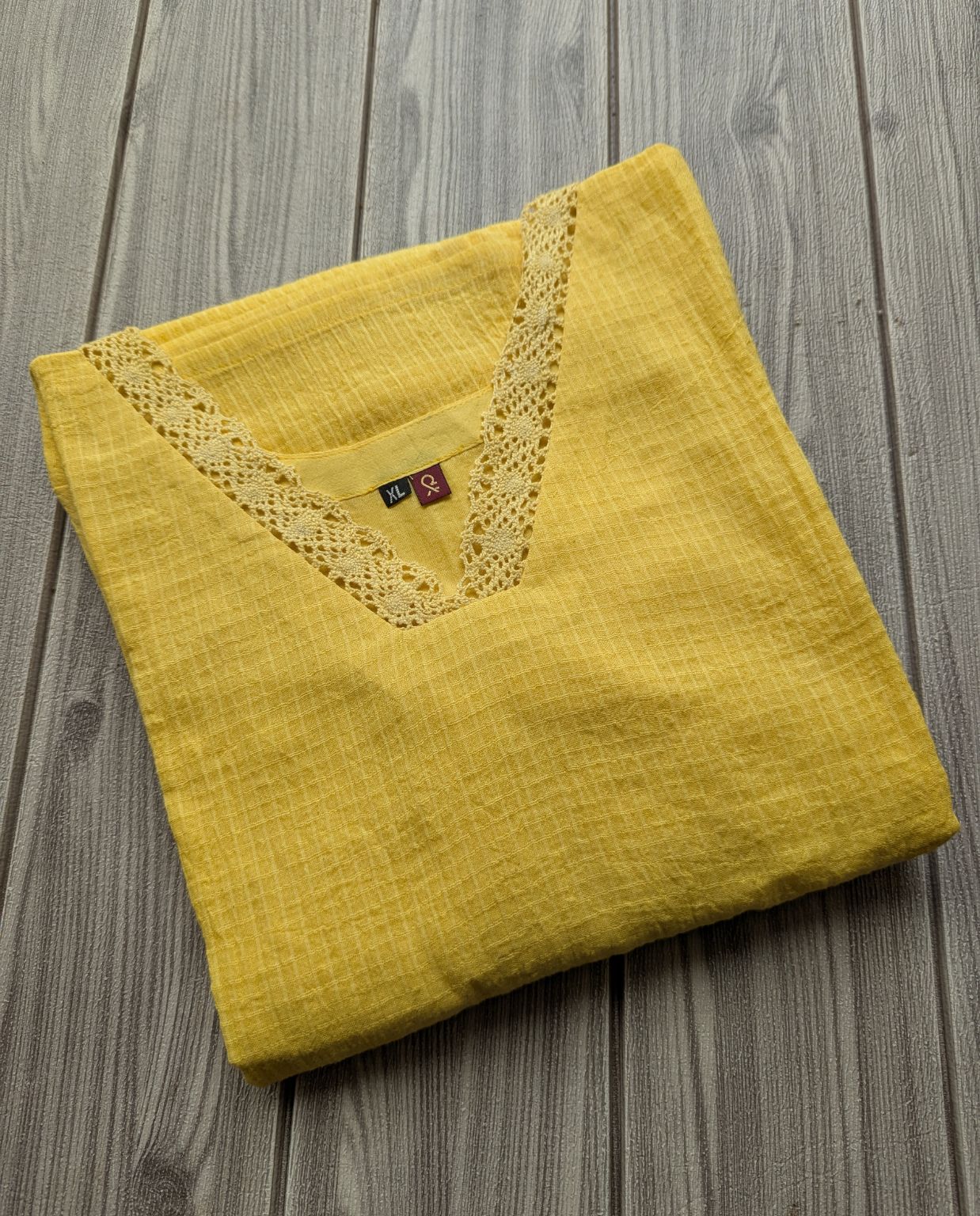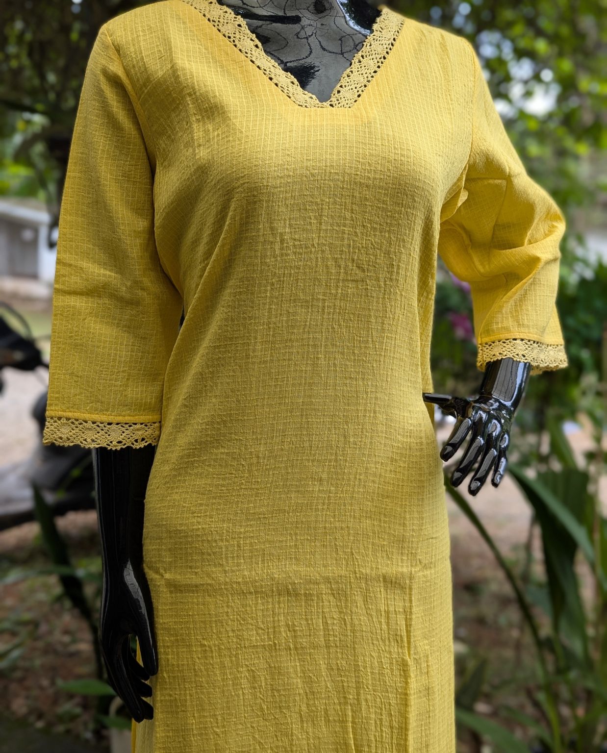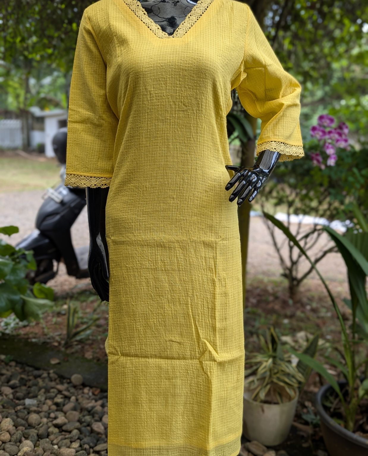 Ready Made Kota Silk Top with Lace Neck Paired with Georgette Dupatta with Lace Border and Santoon Bottom