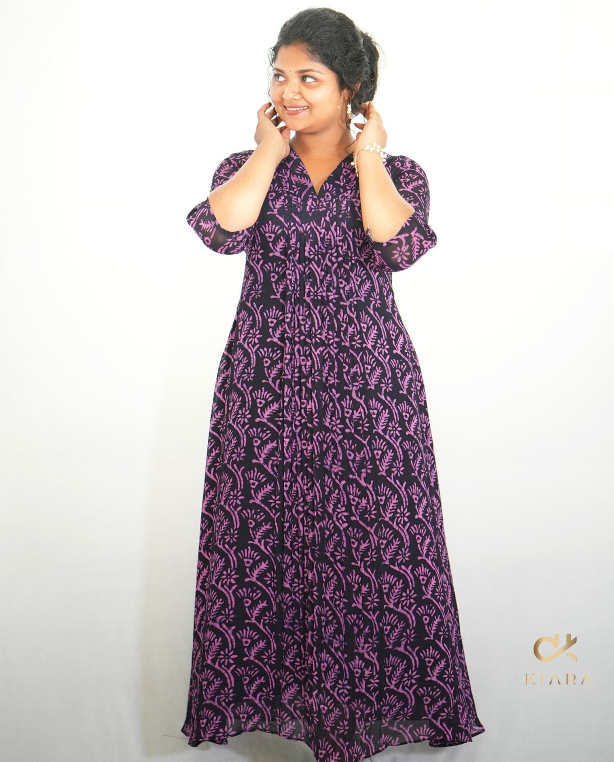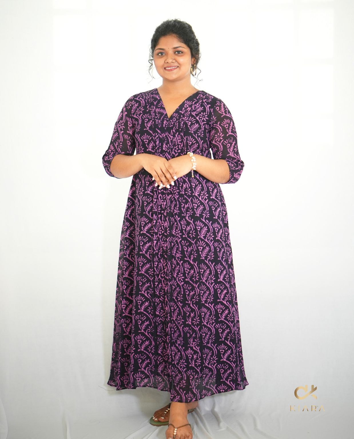 Our Batik Georgette Kurti brings together vibrant artistry and modern elegance. Crafted from soft, lightweight georgette, it showcases a striking batik print that adds a touch of tradition with a contemporary twist. The elegant pleated neckline and bold central panel enhance its chic appeal, making it a versatile piece perfect for both casual wear and dressier occasions. A stylish must-have for any wardrobe.