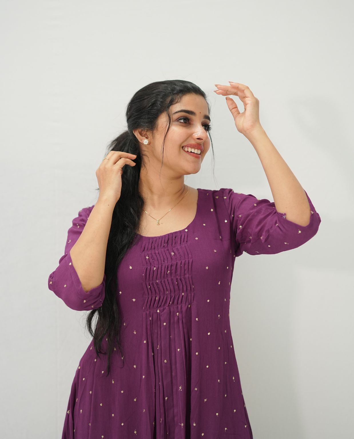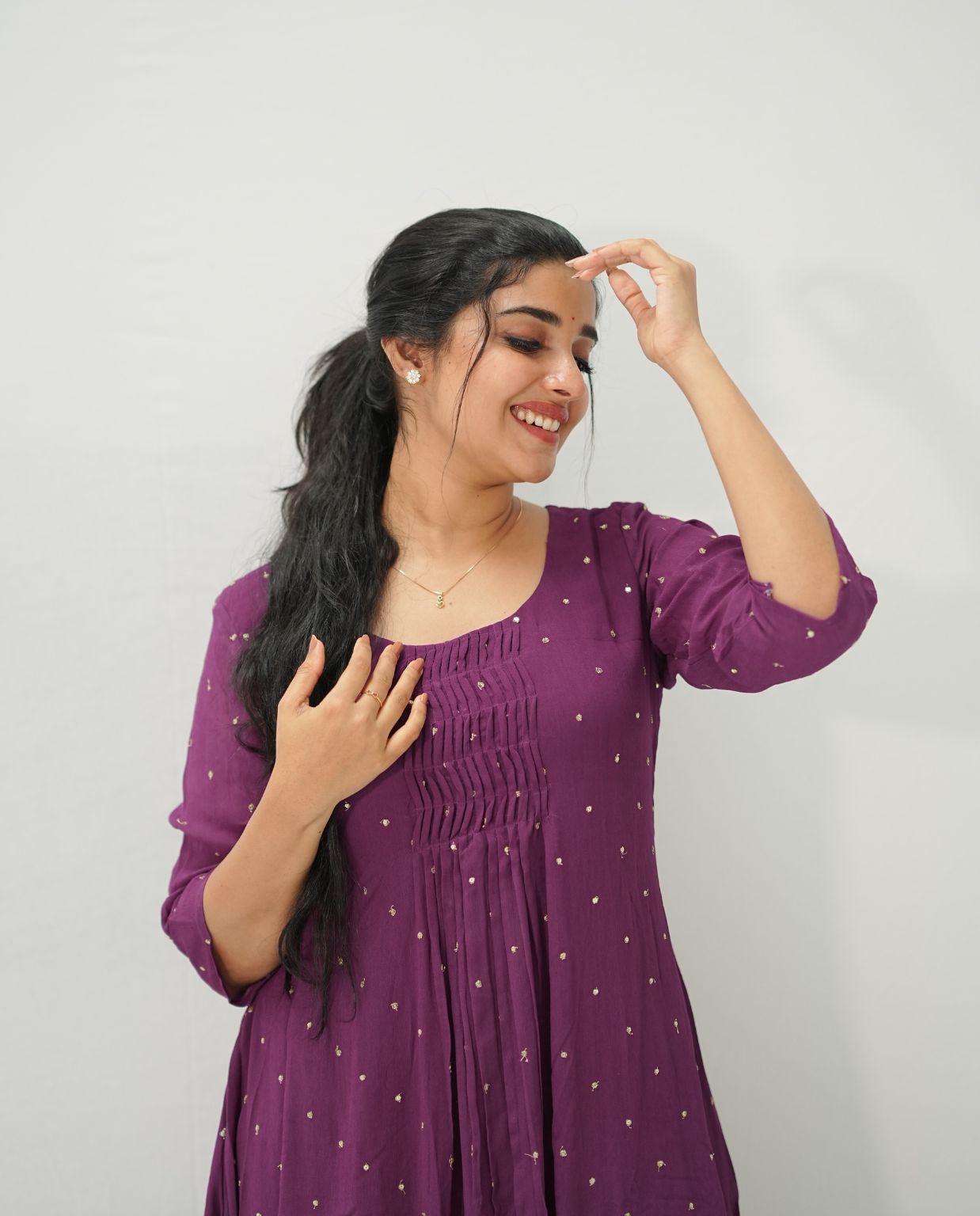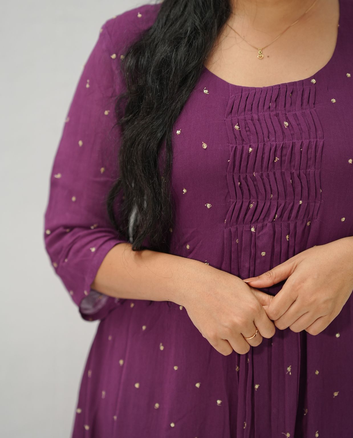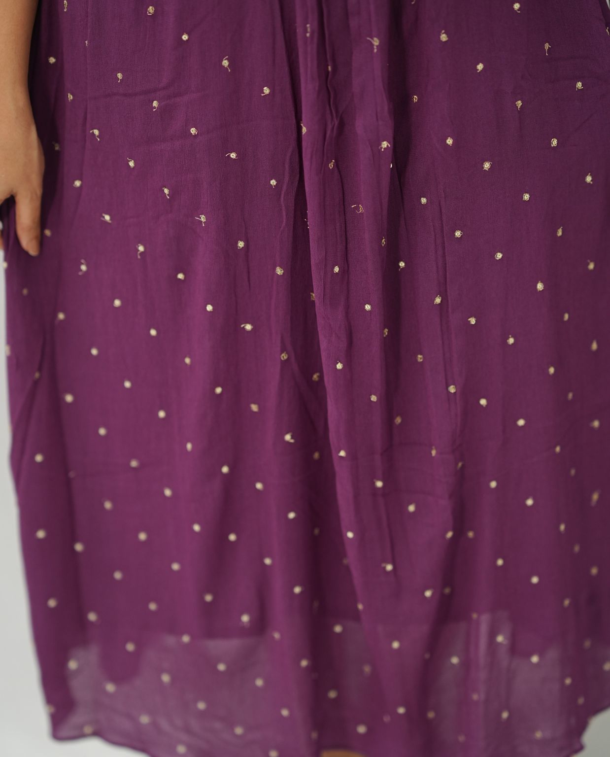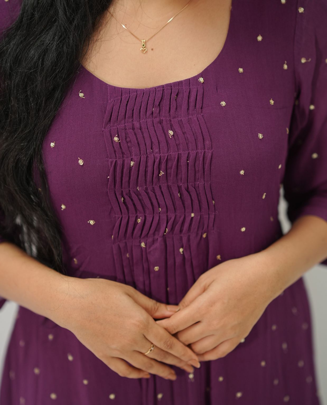 Gathered Sequins Woven Georgette Kurti with Santoon Lining