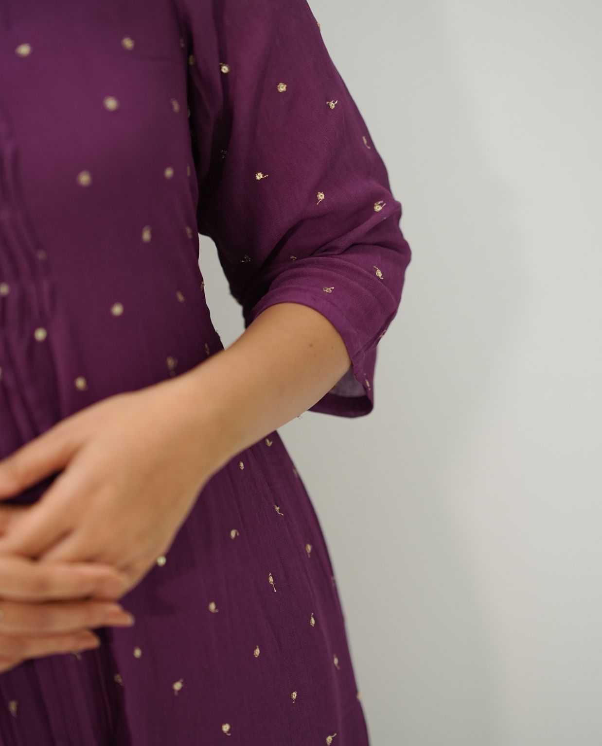 Make a statement with our Gathered Sequins Woven Georgette Kurti, designed to blend elegance with sparkle. Featuring delicate sequin work on a soft woven georgette base, this kurti is beautifully gathered for a flowy, flattering silhouette. The comfortable Santoon lining adds a smooth inner finish, making it perfect for long wear.