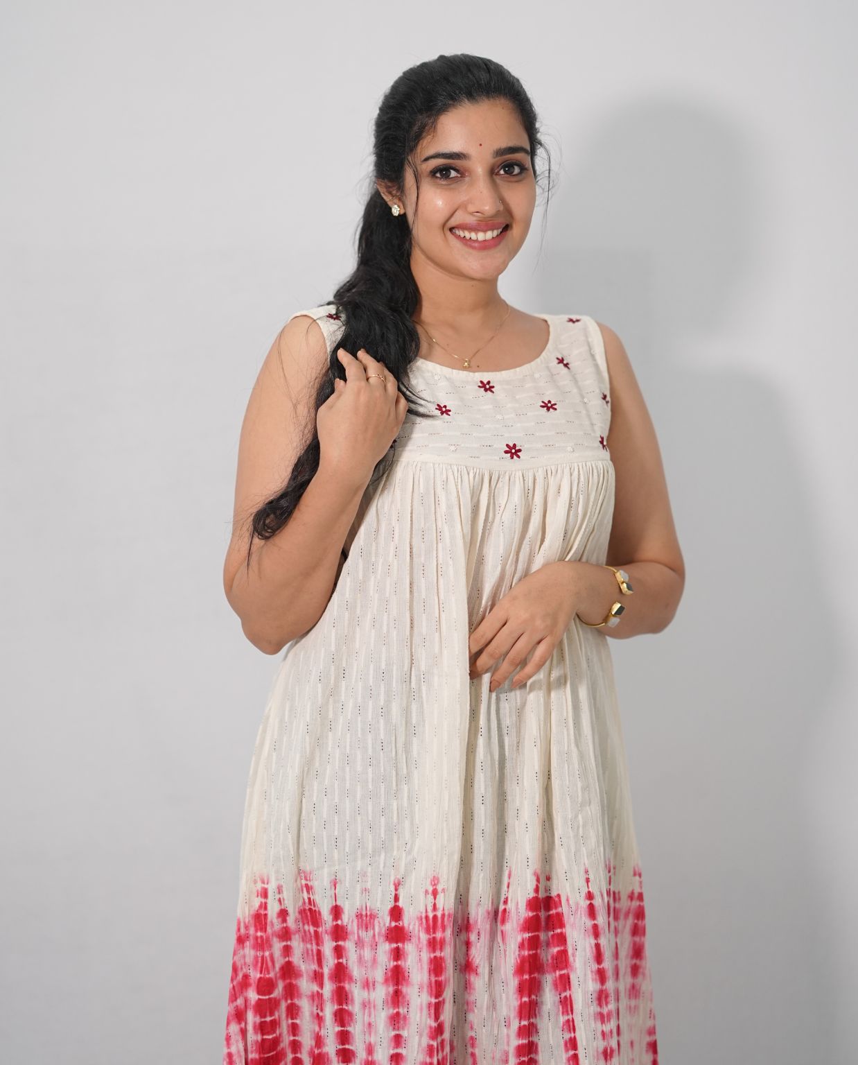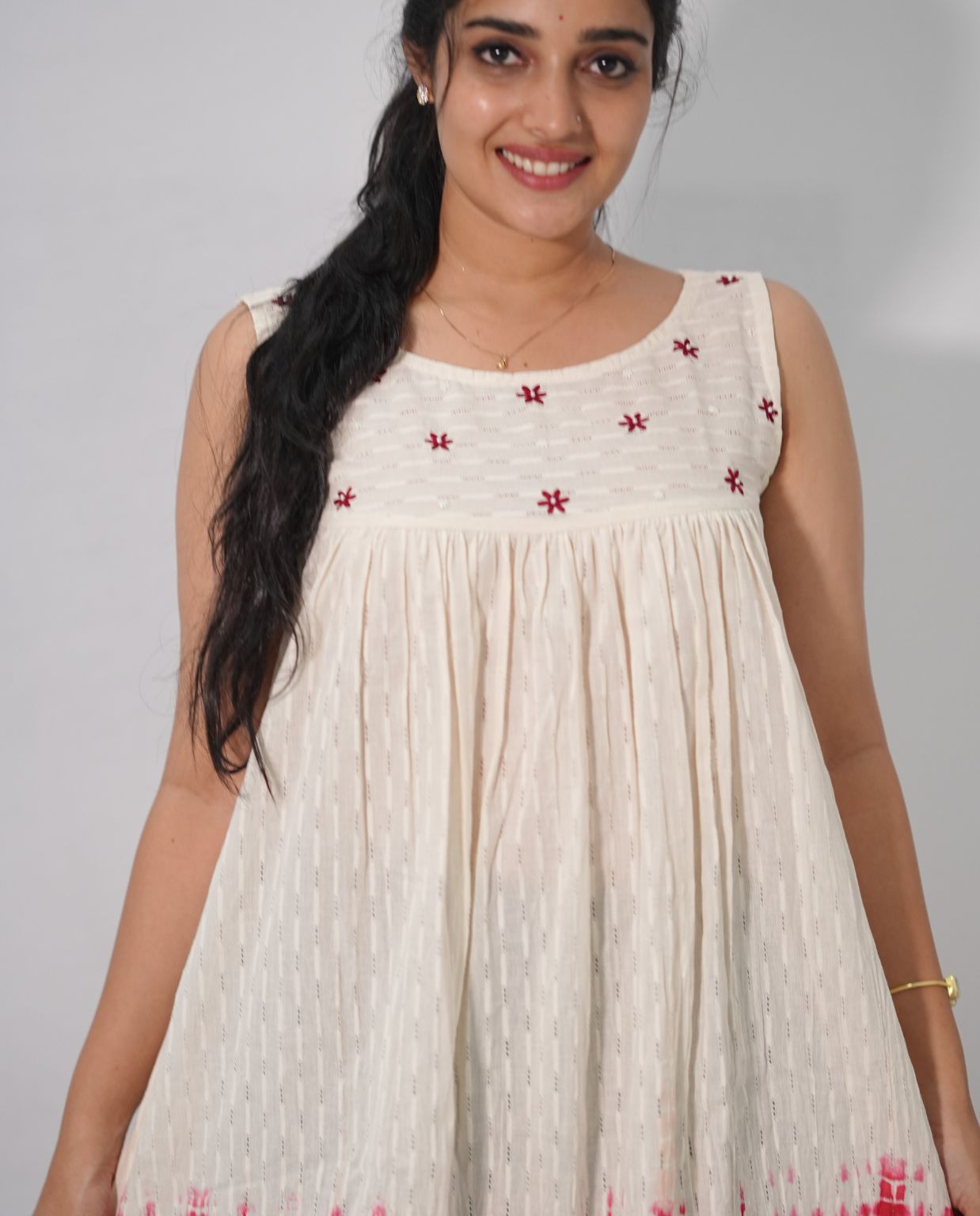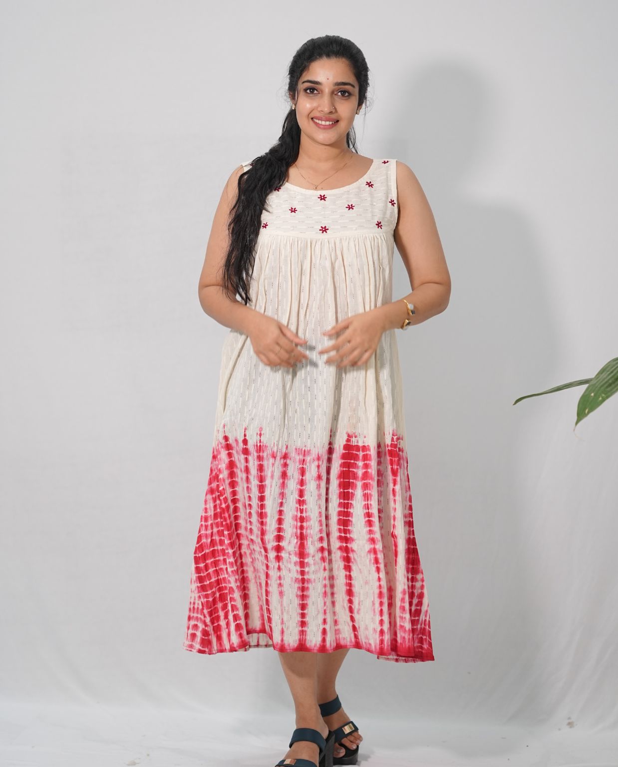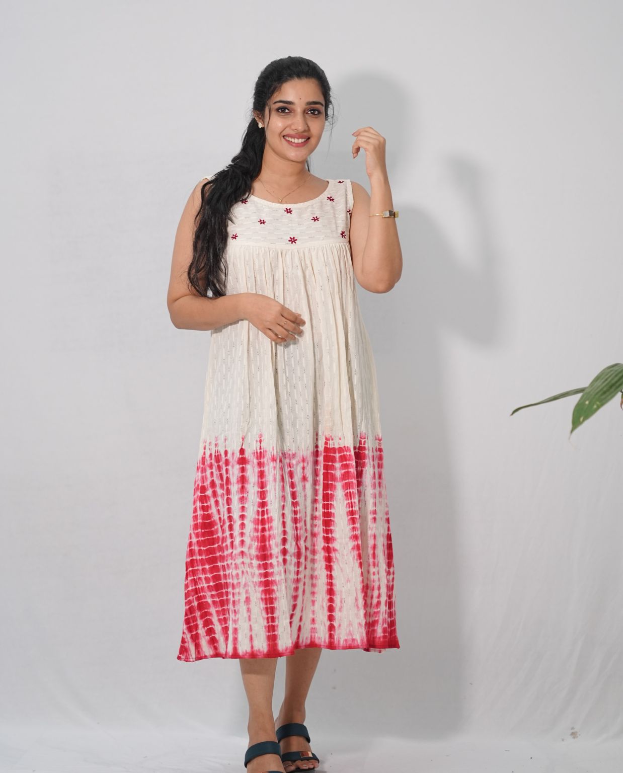 Tie & Dye Kora Cotton Kurti with Hand Work