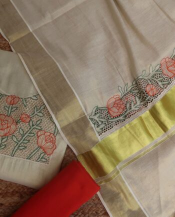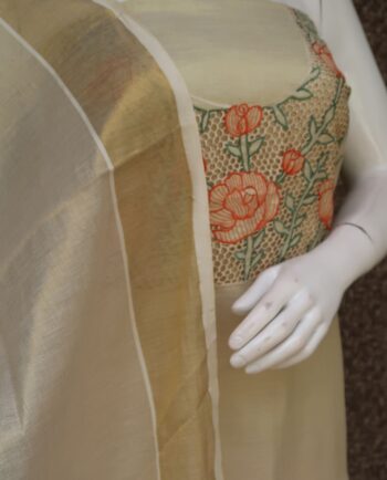 DUPATTA : KALAMKARI PRINTED FABRIC WITH TWO END BORDER ADDED, DUPATTA LENGTH:2.35METERS.