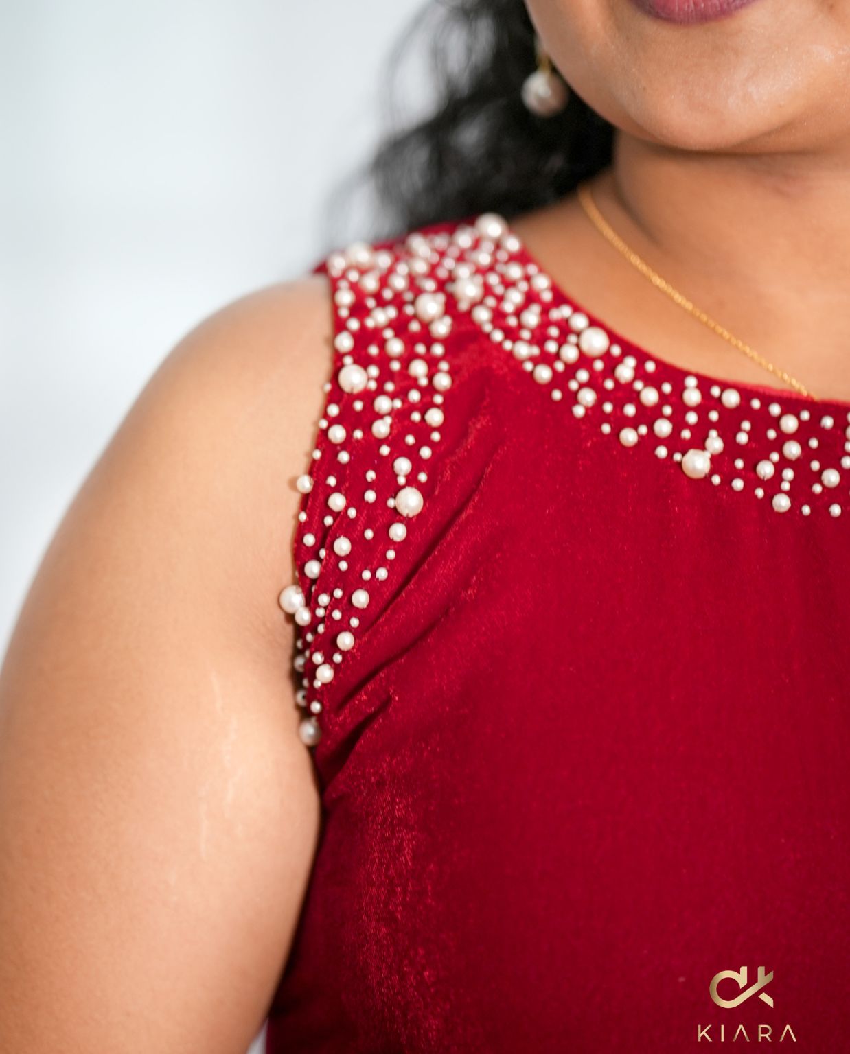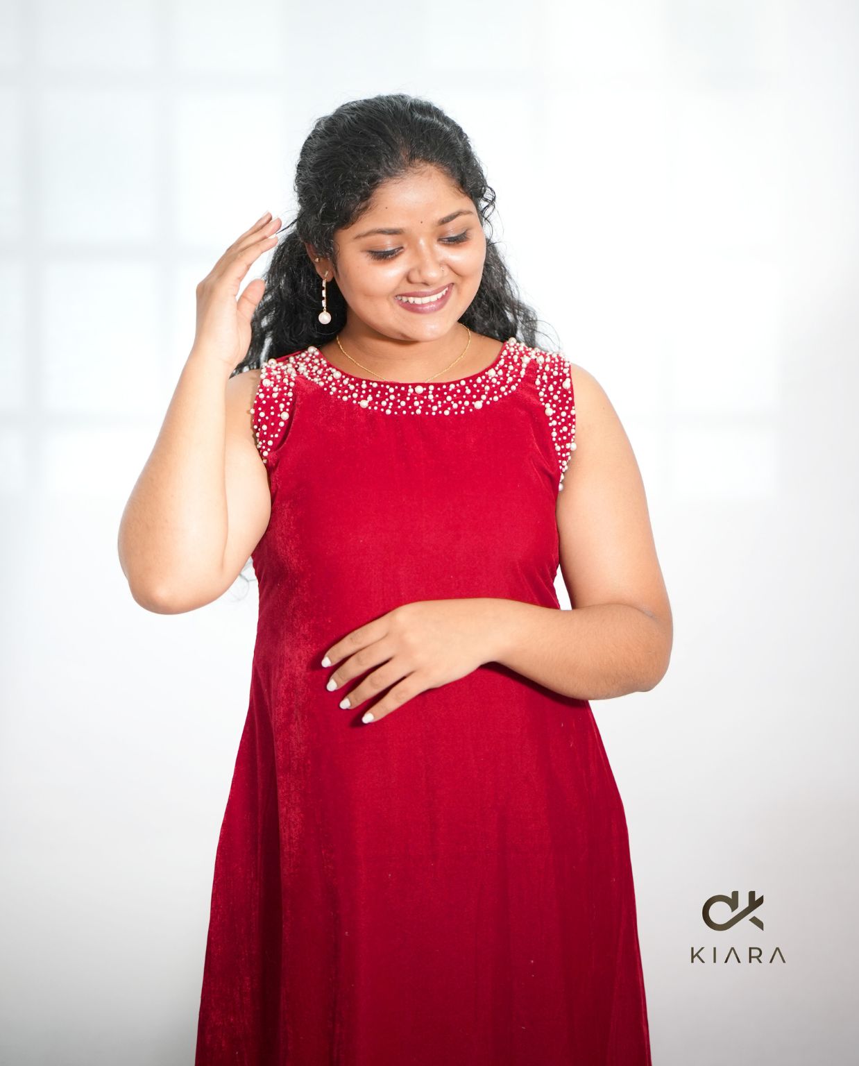 Indulge in timeless elegance with our Hand Embroidered Velvette Dress, designed for those who appreciate refined craftsmanship and luxury. Crafted from premium velvette fabric, this exquisite dress features detailed hand embroidery that adds depth and richness to its design. The look is completed with a heavy lace border, creating a striking and graceful silhouette.