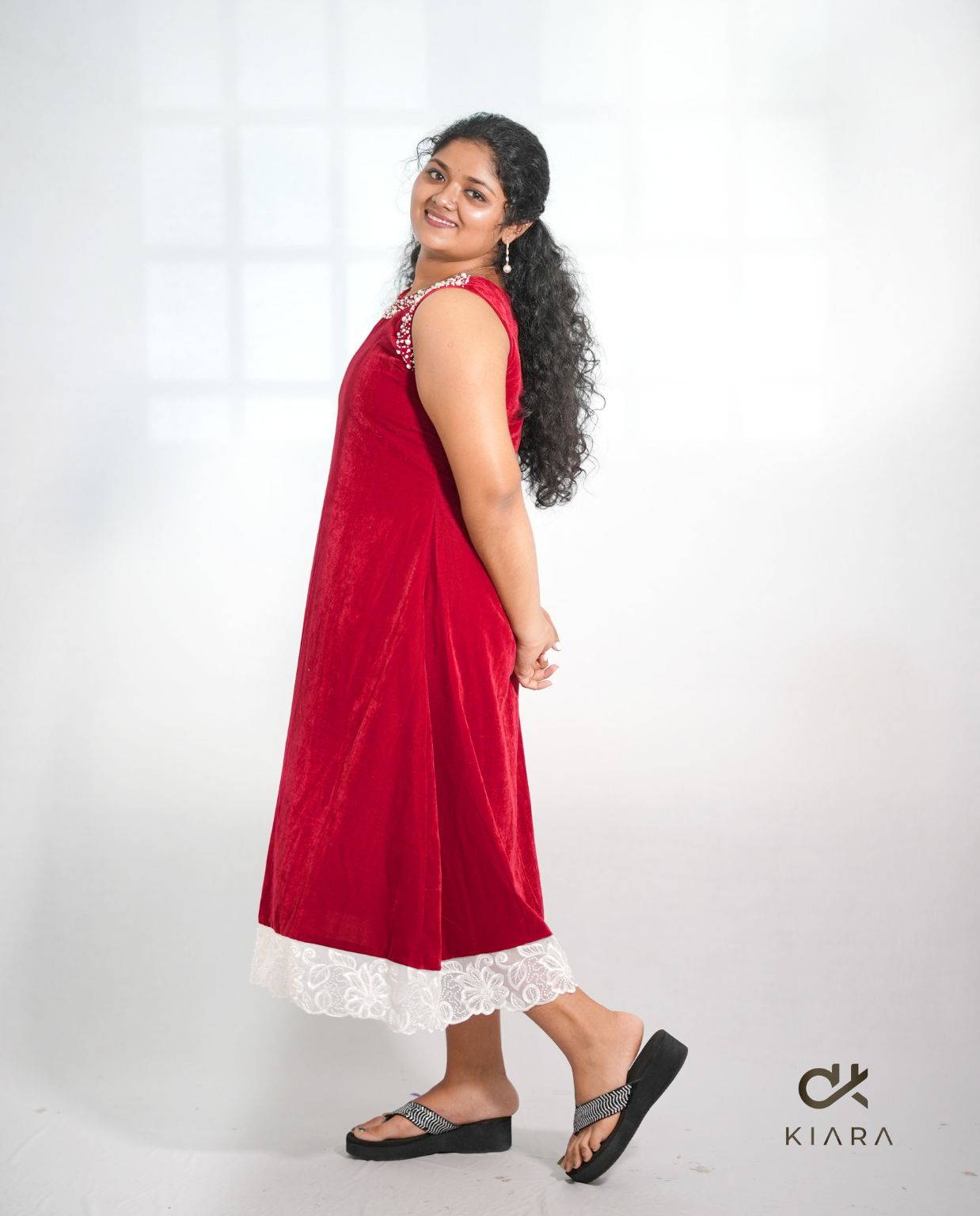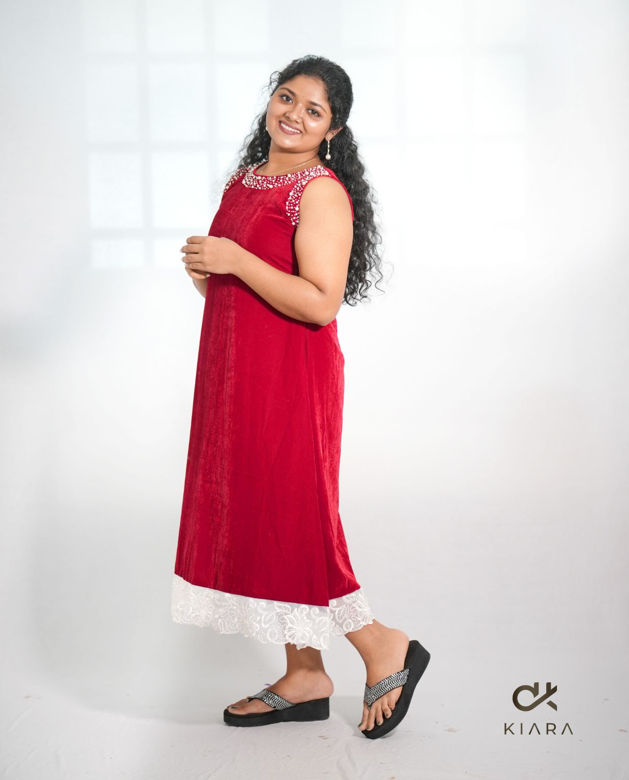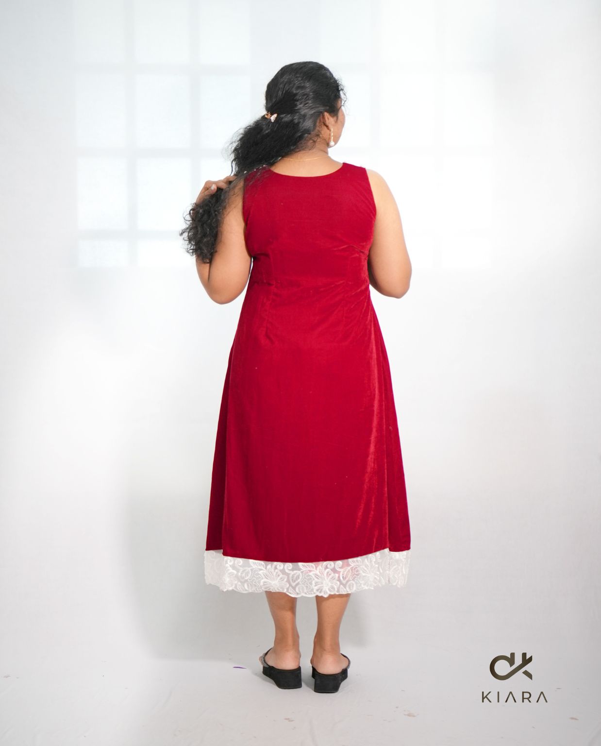 Hand Embroidered Velvette Dress with Heavy Lace Border